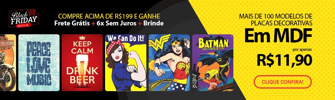 Kit Placas Decorativas em MDF Loucos por Motos - 6 unidades