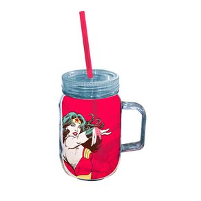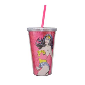 Caneca com Canudo Mulher Maravilha Vermelho Dc Comics