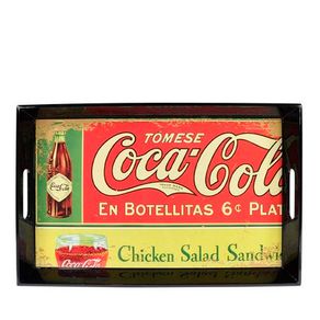 Bandeja de Madeira Coca-Cola Vintage Vermelho e Verde