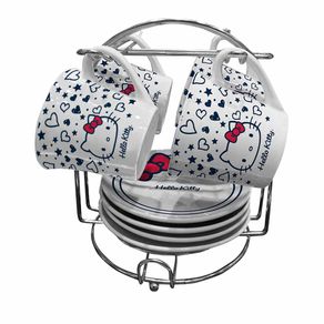Conjuntode 9 Xícaras Hello Kitty Coração Laço Vermelho