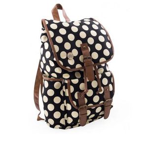 Mochila Bolsa Classica Preta Com Bolinhas Brancas