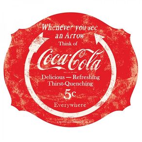 Placa Coca Cola Círculo e Flecha Vermelho - Placa Decorativa Coca Cola Círculo e Flecha Vermelho