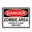 Placa Perigo Área com Zumbis